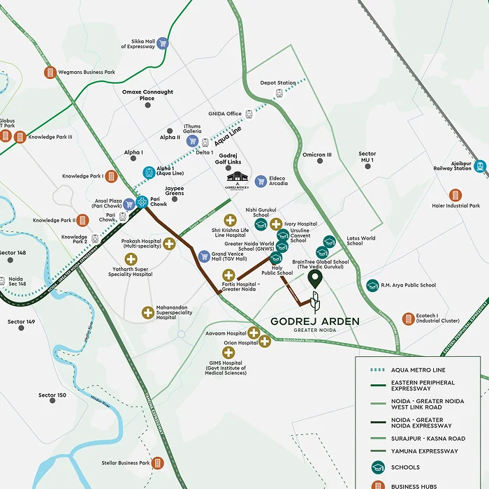 Godrej Properties introduces Godrej Arden, a thoughtfully designed residential development in the flourishing locale of Sector Sigma 3, Greater Noida. Surrounded by wide roads, abundant green spaces, and robust infrastructure, this community offers a perfect balance of convenience and modern living. With excellent connectivity via the Yamuna Expressway, Noida-Greater Noida Expressway, and proximity to the upcoming Jewar International Airport, residents are seamlessly connected to key destinations. The project is also well-supported by nearby metro stations, reputed schools, healthcare facilities, and shopping hubs — making it an ideal choice for families and working professionals seeking comfort, accessibility, and a premium lifestyle.